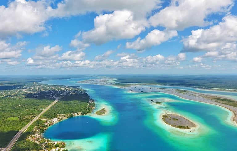 Bacalar, known for its impressive Seven Colors Lagoon, surrounded by lush vegetation and mangroves, is an ideal place to escape the routine and connect with nature at its finest. Its name comes from the Mayan Bakhalal, which means "near or surrounded by reeds."