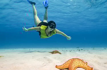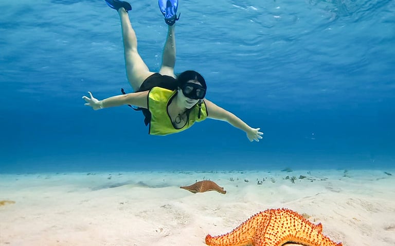 You'll enjoy snorkeling, always accompanied by an aquatic guide, on the Palancar and Colombia reefs, where you'll see a wide variety of marine life among impressive coral reefs. You'll also visit the famous "El Cielo" beach, a spectacular sandbank where a multitude of starfish evoke an inspiring and romantic starry sky.