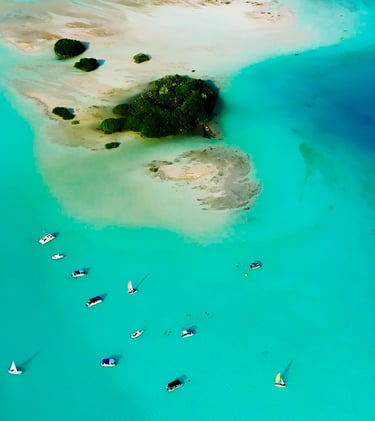 Bacalar, or the Lagoon of Seven Colors, is a lagoon located in the southern region of Quintana Roo, Mexico. This impressive body of freshwater, which stretches 42 kilometers long and is just over 2 km wide at its widest point, gets its name from its stunning spectrum of blue hues, ranging from deep sapphire to brilliant turquoise. Its crystal-clear waters and serene atmosphere have made it one of the most sought-after destinations in the Mexican Caribbean.