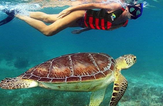 Snorkeling with sea turtles in Akumal Bay