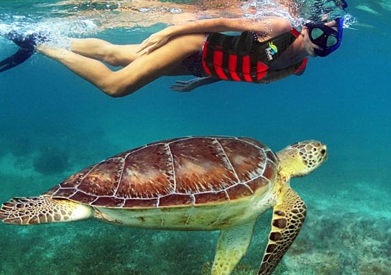 En el Tour Privado Snorkel con Tortugas Marinas desde Cancun, pasaremos por usted hasta su hotel, nos dirigiremos a la Bahía de Akumal; una de las playas más bonitas de la Riviera Maya. En sus tranquilas aguas protegidas por un arrecife, habitan tortugas marinas y disfrutaras de la actividad de snorkel mirando una gran variedad de vida marina donde el atractivo principal serán las tortugas marinas en su hábitat natural.