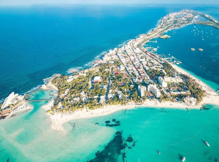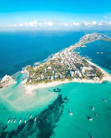 Isla Mujeres es un Pueblo Mágico y uno de los destinos emblematicos del Caribe Mexicano, ubicada frente a Cancún México, conocida por sus playas de arena blanca, aguas turquesas, y vida marina abundante, ideal para los amantes de la playa y el snorkel. Su nombre proviene de las figuras femeninas encontradas por los españoles, depositadas en honor a la diosa maya Ixchel.